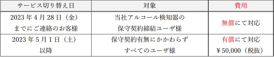 本サービスは、2020年4月時点で、新型コロナウィルスというものが未知のものであったことから始めたものです。当時、事業者様にて感染者が使用したアルコール検知器の物理的な処置に困っている、二次的な感染拡大の可能性を排除できず使用停止したいが、安全管理を止めることはできないという状況が多々あったことから、契約ユーザに限り、感染発生時にすみやかに使用していたアルコール検知器引取り、消毒を行って返却するサービスとして対応してまいりました。