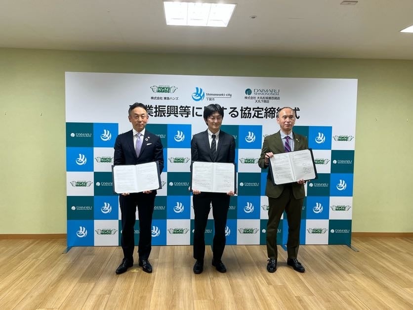「プラグス マーケット下関店」開業2周年を機に、下関市、株式会社大丸松坂屋百貨店、当社の三者による産業振興等に関する連携協定を3月18日に締結いたしました。