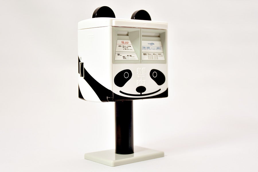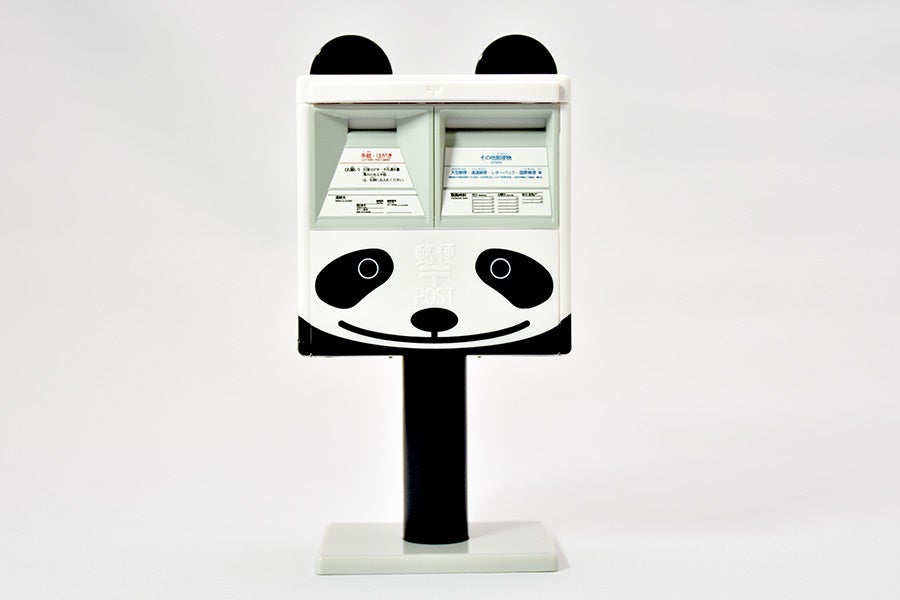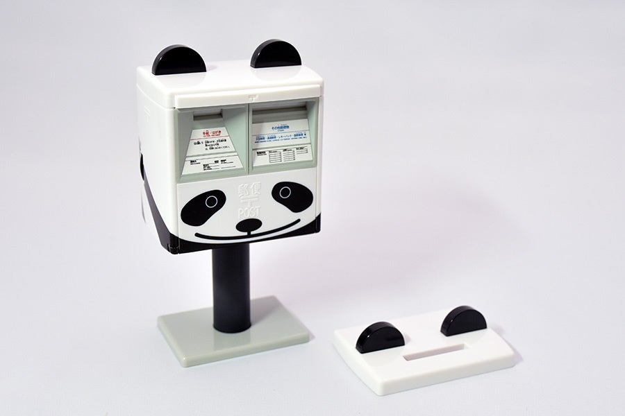 2023年7月に販売開始した「1/12サイズ郵便差出箱13号フィギュア」の新バージョンで、上野恩賜公園に設置されたパンダデザインのポストを1/12サイズで再現したものです。飾るだけでなく、ポスト上部を付属の部品に付け替えることで貯金箱や切手入れとして使用することができます。左側面の扉は開閉させることができるため、中に入れたものを取り出せます。