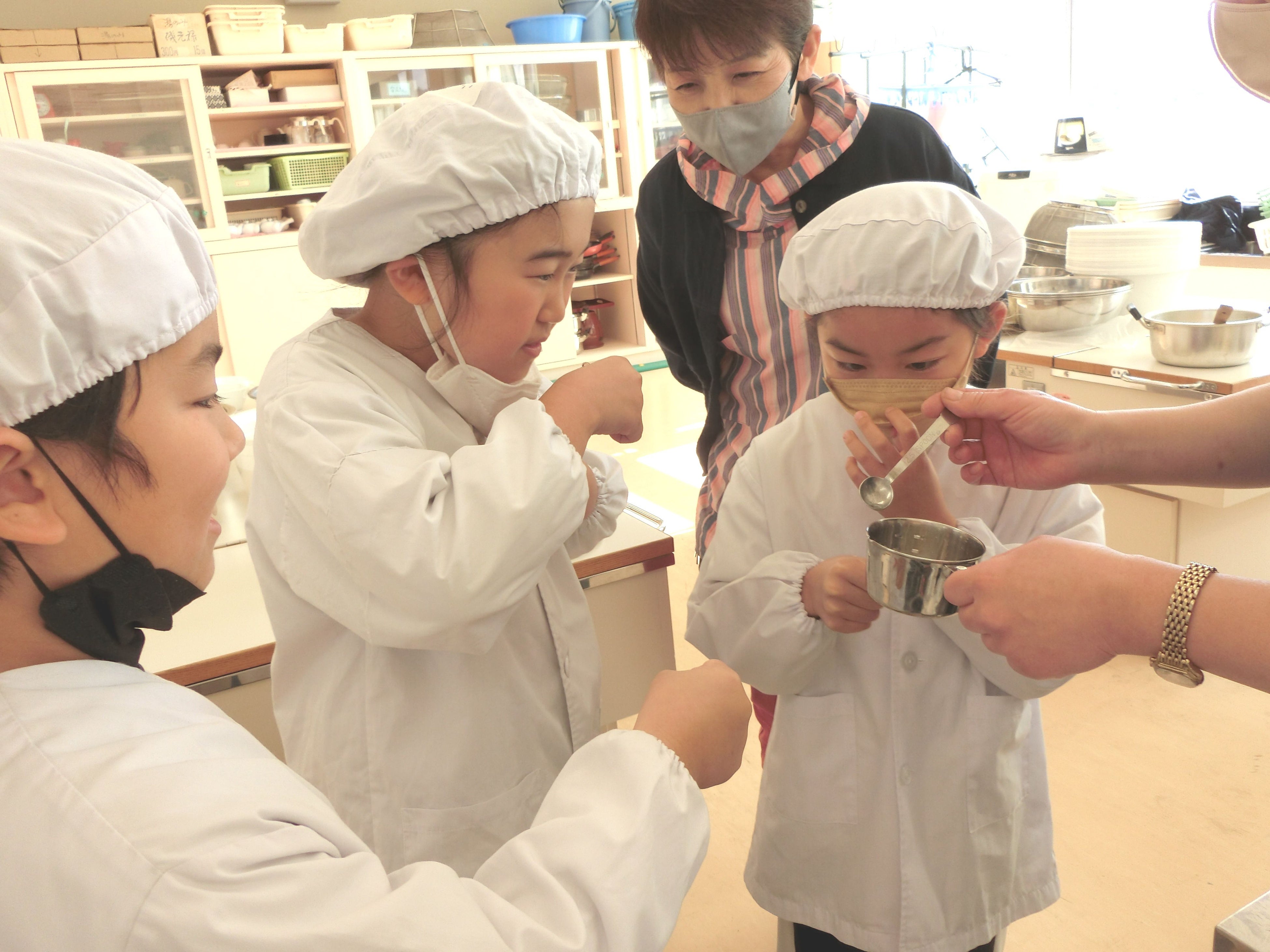 講師の田中フローラさんは、そんな子どもたちのやる気に応えようと、一つ一つの作業工程を丁寧に教えてくれました。出来たての豆腐を食べた子どもたちは口々に、「すごく甘い!本当に美味しい!」と感動していました。
