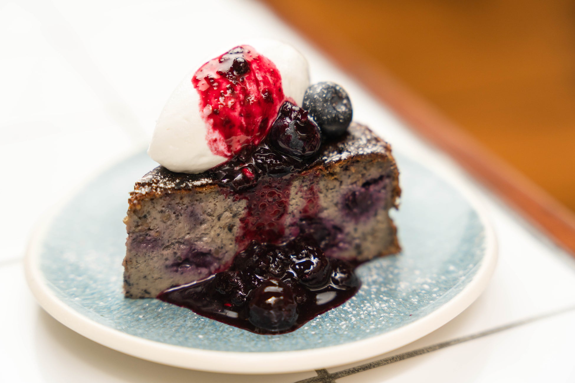 実がぎゅっと詰まったブルーベリーと爽やかな甘さが特徴のアメリカンチェリーを贅沢にトッピング。自家製チーズソースが果実の甘みを引き立て、まるで “果実のドレス” をまとったような姿は、思わず写真を撮りたくなるあざと可愛さ♡