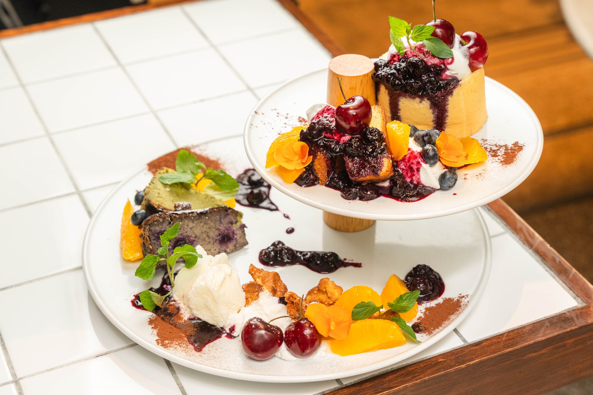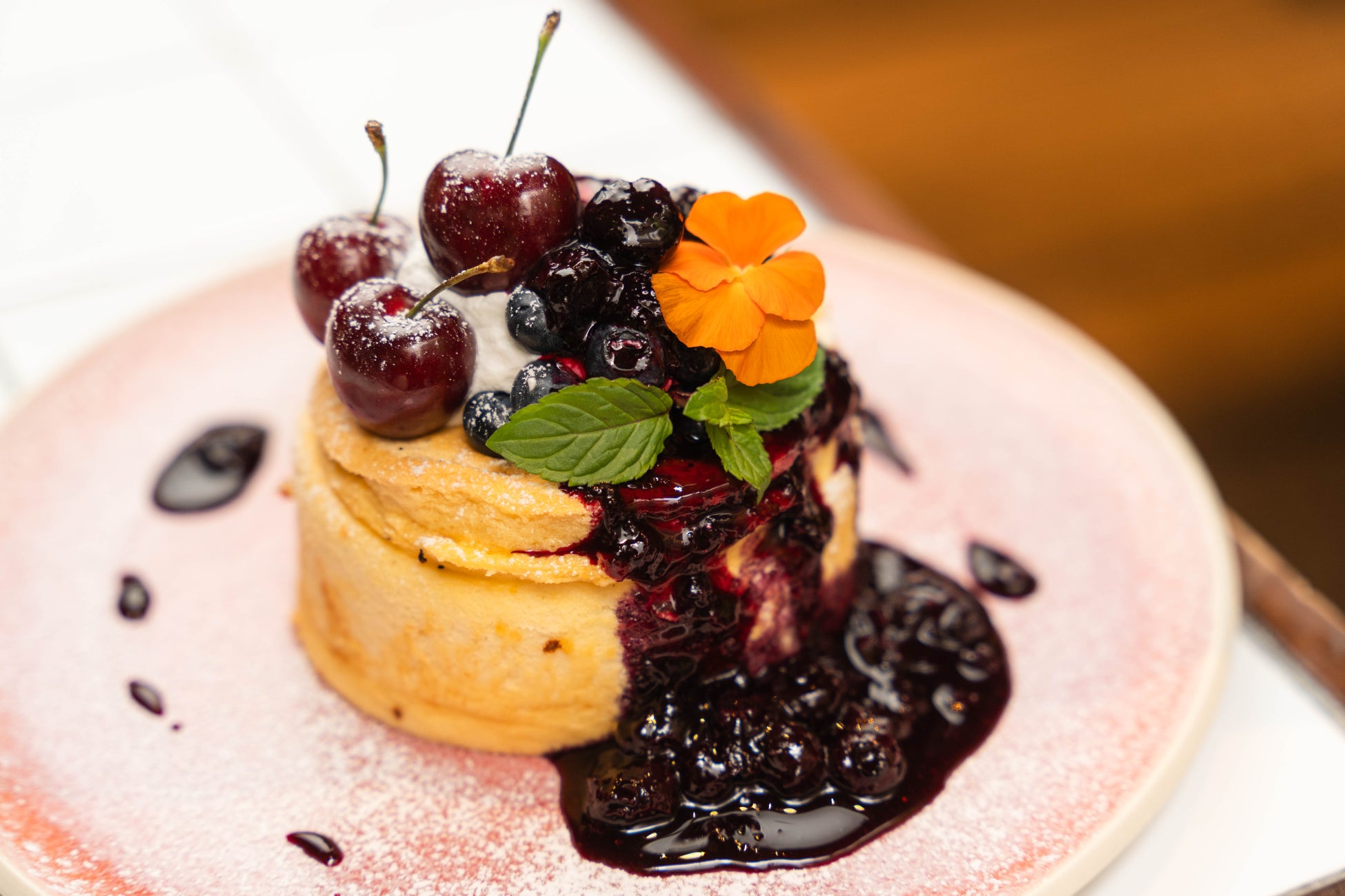 甘酸っぱく、みずみずしいブルーベリーとアメリカンチェリーをが主役の、とっておきのスイーツが登場。定番人気のパンケーキとバスクチーズケーキも、果実の華やぎで夏仕様に。見た目の愛らしさと味わいの両方で、「恋に落ちる」体験をお届けします。
