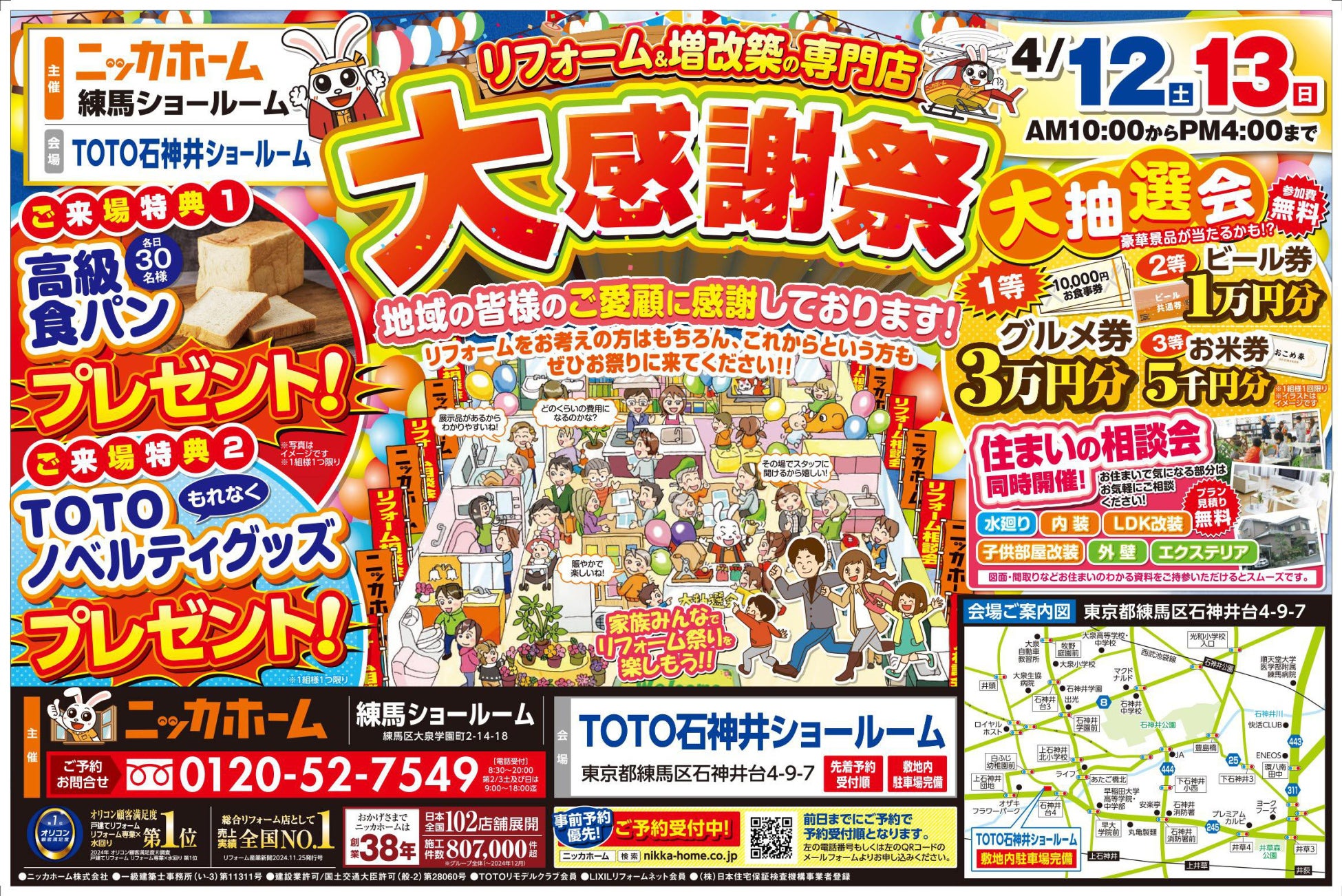 【東京都練馬区在住の方 必見】大感謝祭を4月12日・13日 2日間限定開催決定‼【リフォーム&増改築 ニッカホーム】