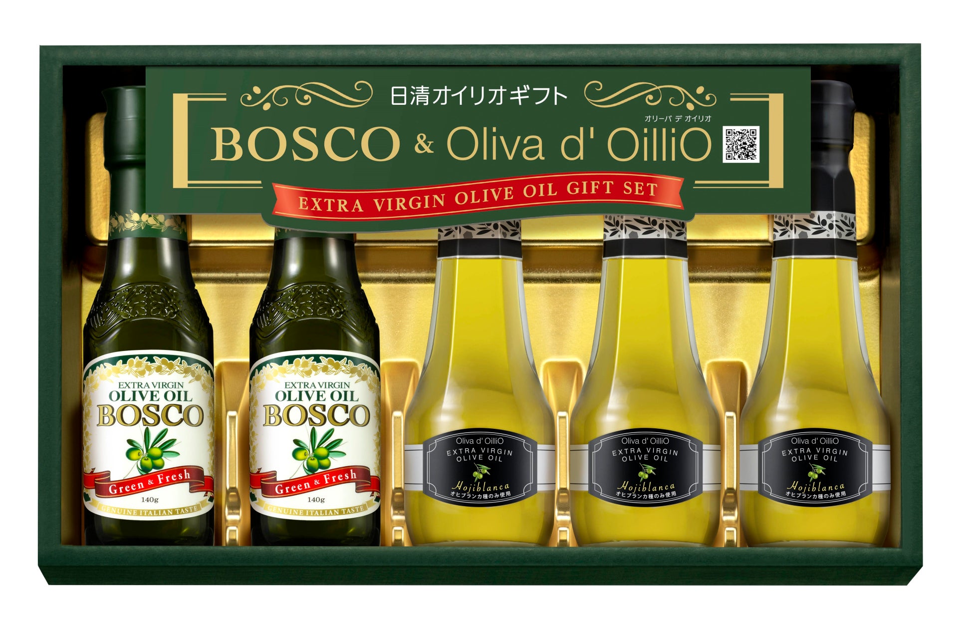 2024年歳暮期の日清オイリオギフトは、人気のオリーブオイルギフト3,000円・5,000円の品揃えを見直しました。おなじみのボスコオリーブオイルをアソートしたBGシリーズは、早摘みグリーンオリーブのボスコエキストラバージンオリーブオイルのみを詰め合わせました。生食でそのまま豊かな風味をお楽しみいただけるボスコオリーブオイルギフトです。また、スペインアンダルシア州産のオリーブオイルのみを使用した産地限定、単一品種のオリーバ デ オイリオエキストラバージンオリーブオイル オヒブランカと、ボスコエキストラバージンオリーブオイルを詰め合わせた、2つの味わいをお楽しみいただけるBLシリーズを新発売いたします。