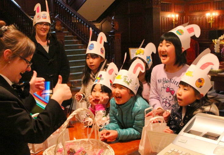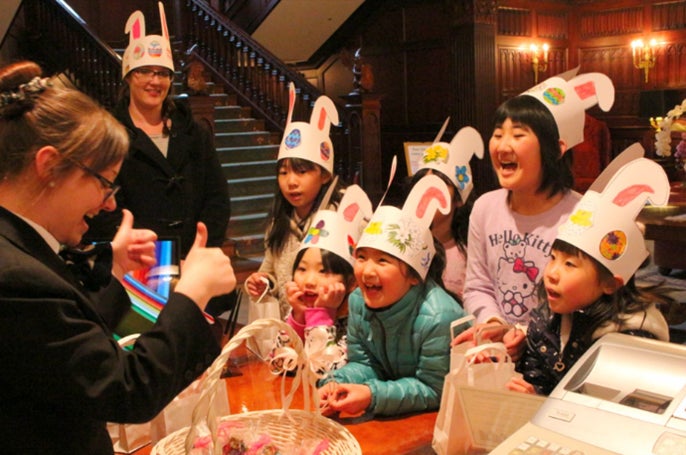 イースターの定番アクティビティ「イースターエッグハント」を外国人教員と英語でご体験いただけます。マナーハウス内にちりばめられたイースターエッグを集めながら、館内を探検できます。お菓子のプレゼント付きです。
