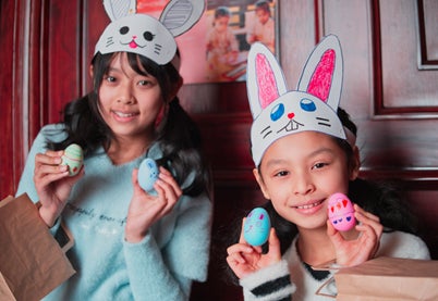 オリジナルの「イースターエッグ」と「イースターバニーのマスク」を外国人教員と一緒に英語でお作りいただけます。作ったエッグとマスクはお土産にお持ち帰りいただけます。