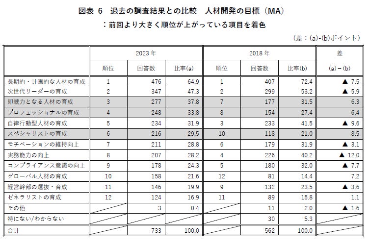 前回調査(2018)との比較からアフターコロナの人材開発に関する変化を読み取る