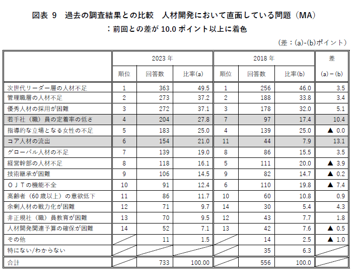 『人材白書2023』をWEB公開 人材開発の課題では「若手の定着率の低さ」と「コア人材の流出」が浮き彫りに