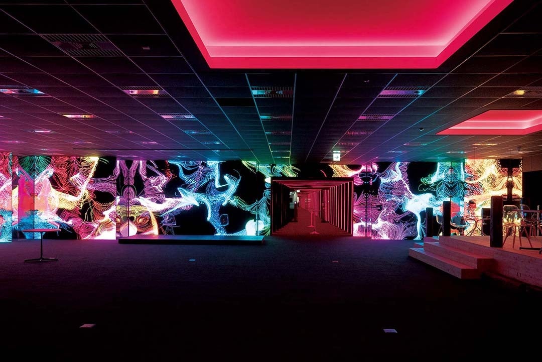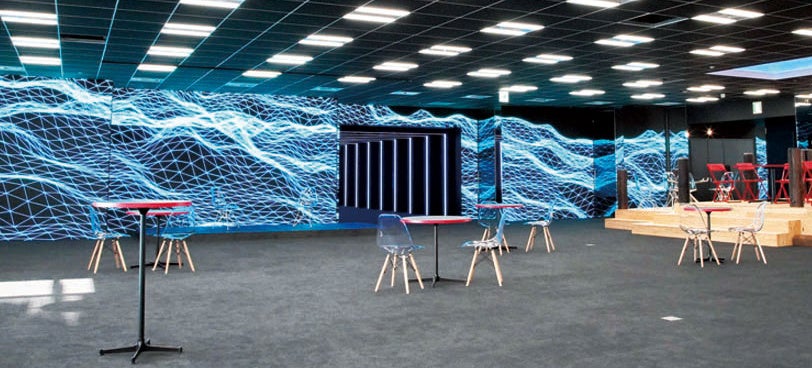 施設のオープンラウンジには幅20メートル、高さ3メートルの大型LEDサイネージ「トンネルグランドビジョン」が設置され、様々な映像コンテンツの発信、イベントやセミナーでのスクリーン使用など幅広い活用が可能。またオープンラウンジとメンバーラウンジを繋ぐ「ビッグゲートトンネル」は、新しいことへの挑戦、Game Changerを目指す場への旅路を表現するなど、感性を刺激する空間となっています。