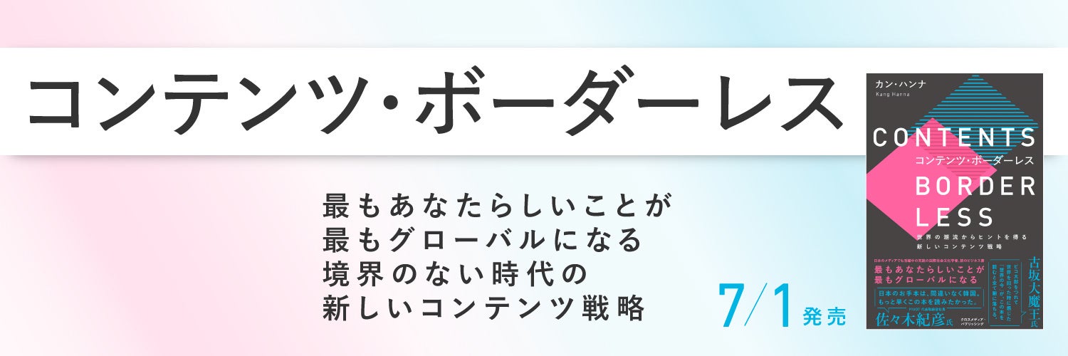 株式会社クロスメディア・パブリッシング(東京・渋谷区、代表取締役・小早川幸一郎)は、2022年7月1日に書籍『コンテンツ・ボーダーレス』を刊行します。本書は、日韓のエンタメ業界でも活躍する国際社会文化学者のカン・ハンナ氏が、世界にコンテンツを届ける方法について独自の視点から解説した本です。