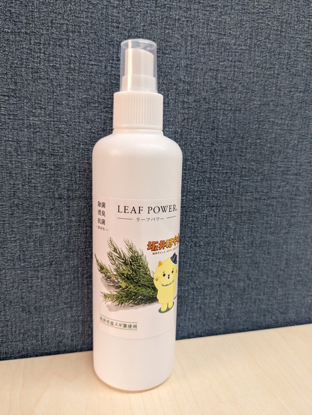 森林資源の利活用と森林に親しんでもらうことを目的に、”坂井市産のスギ葉”を使用した除菌・消臭剤を製作しました。森林の健全な成長にかかせない、間伐や枝打ち後に出る葉を使用しており、本来使用されない資源を利活用したものになっています。なお、ボトルには坂井市公式キャラクター「坂井ほや丸」がデザインされています♪
