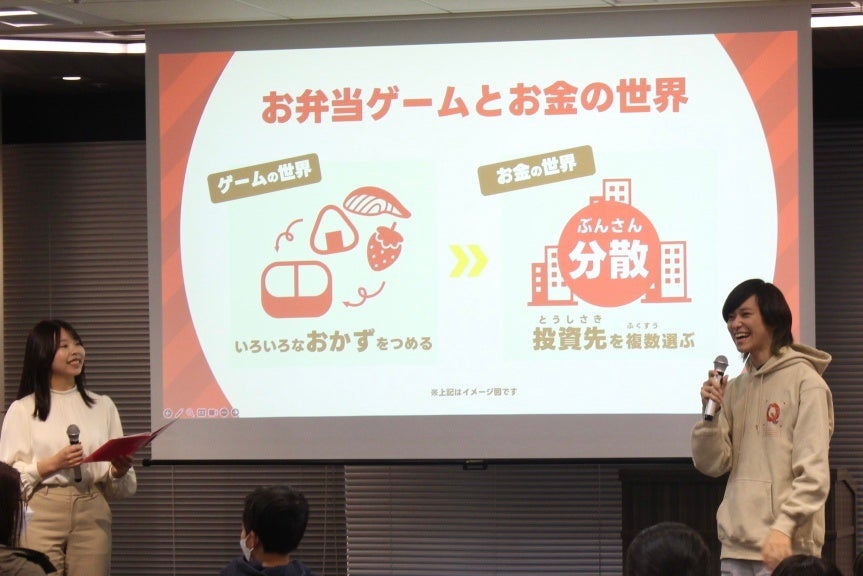 ゲームの後は、当社社員よりお弁当ゲームと実際のお金の世界の共通点を解説しました。