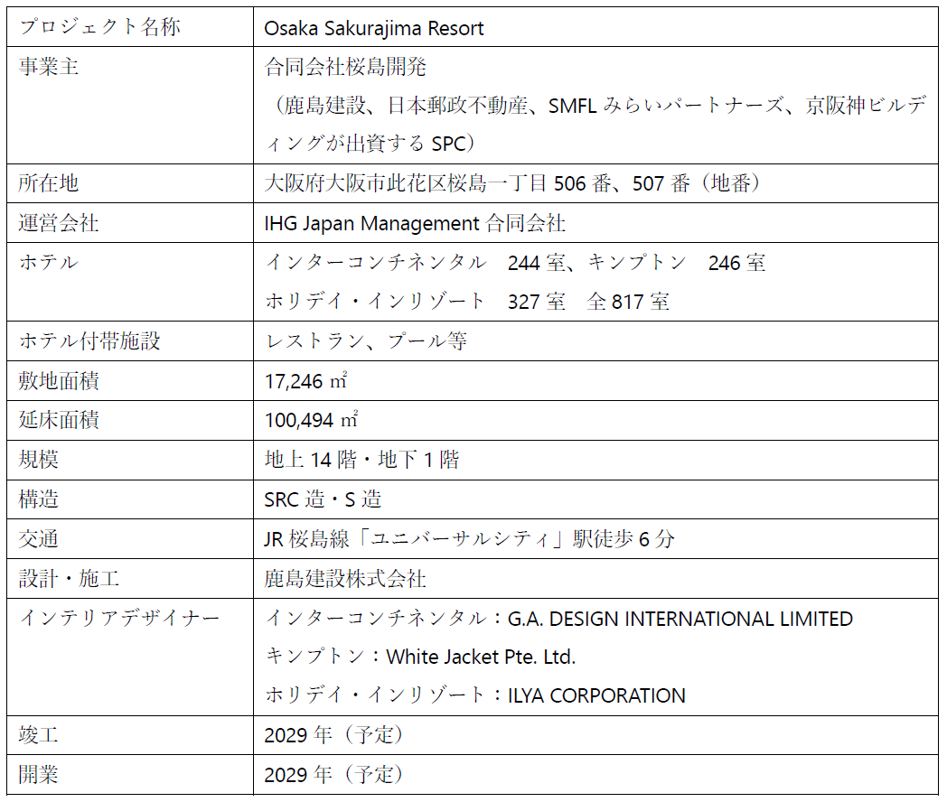三井住友ファイナンス&リース株式会社(代表取締役社長:今枝 哲郎、以下「SMFL」)は、戦略子会社のSMFLみらいパートナーズ株式会社(代表取締役社長:上田 明)が、鹿島建設株式会社(代表取締役社長:天野 裕正)、日本郵政不動産株式会社(代表取締役社長:池田 明)、京阪神ビルディング株式会社(代表取締役社長:若林 常夫)と共同出資する合同会社桜島開発が、2025年12月、ユニバーサル・スタジオ・ジャパン オフィシャルホテルで唯一となる外資系ホテル「Osaka Sakurajima Resort」プロジェクトに本格着工したことをお知らせいたします。