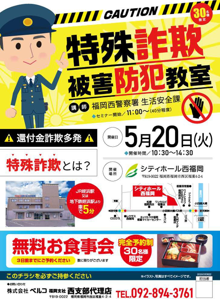 特殊詐欺被害の未然防止へ!シティホール西福岡 福岡西警察署と連携した防犯教室を5月20日に開催