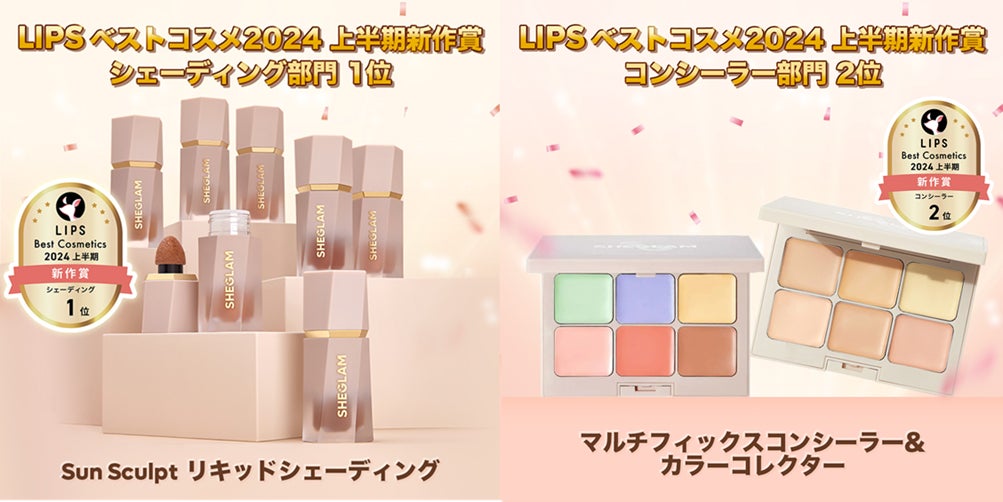 グローバルコスメブランド 「SHEGLAM(シーグラム)」は、美容クチコミアプリLIPSの2024上半期新作賞にて、「Sun Sculpt リキッドシェーディング」がLIPSベストコスメ2024 シェーディング部門1位に輝き、「マルチフィックスコンシーラー&カラーコレクター」がコンシーラー部門2位を受賞する2冠を達成いたしました。