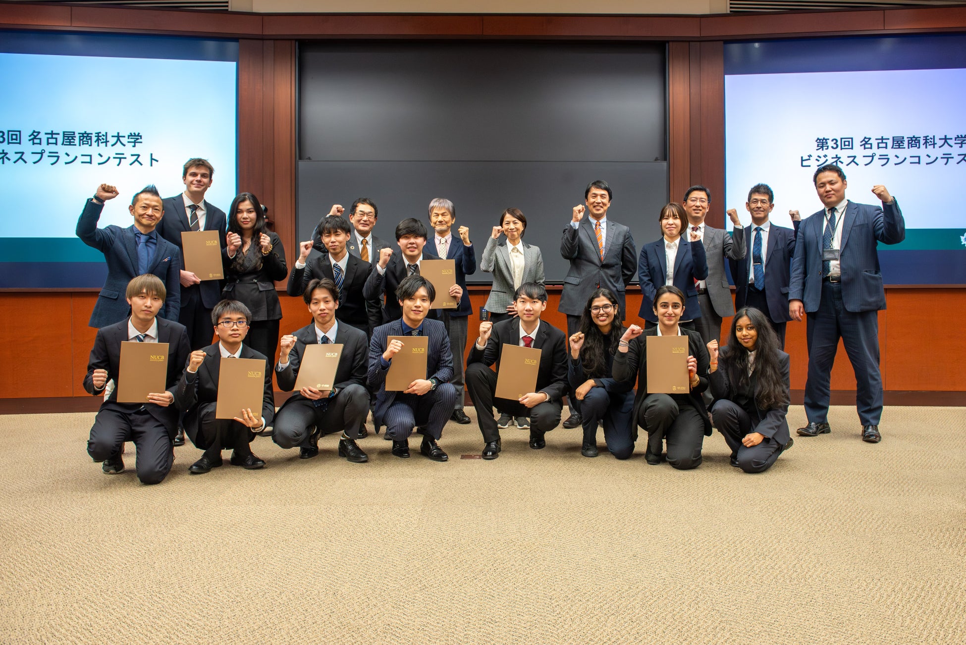 本コンテストは、名古屋商科大学商学部が主催して実施するビジネスプランコンテストです。3回目となった今回、総勢20組の応募から1次審査が行われ、8組の最終審査出場者を決定。最終審査のプレゼンテーションにより各賞が選出されました。商学部では、「ケースメソッド《討議》」と「フィールドメソッド《体験》」を教育の両輪として、インテンシブかつ相乗的に組み合わせて実践することで、新しい学びを実現し、産業界や地域社会の要請に対応するリーダーを養成します。本コンテストはこの取り組みにおける《体験》に当たります。