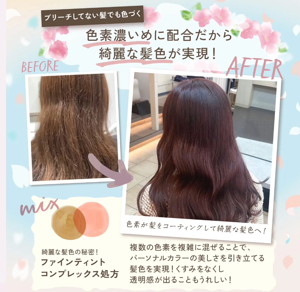 褪色を抑え、ブリーチをしている方はもちろん、していない髪の毛への補色も可能になりました。