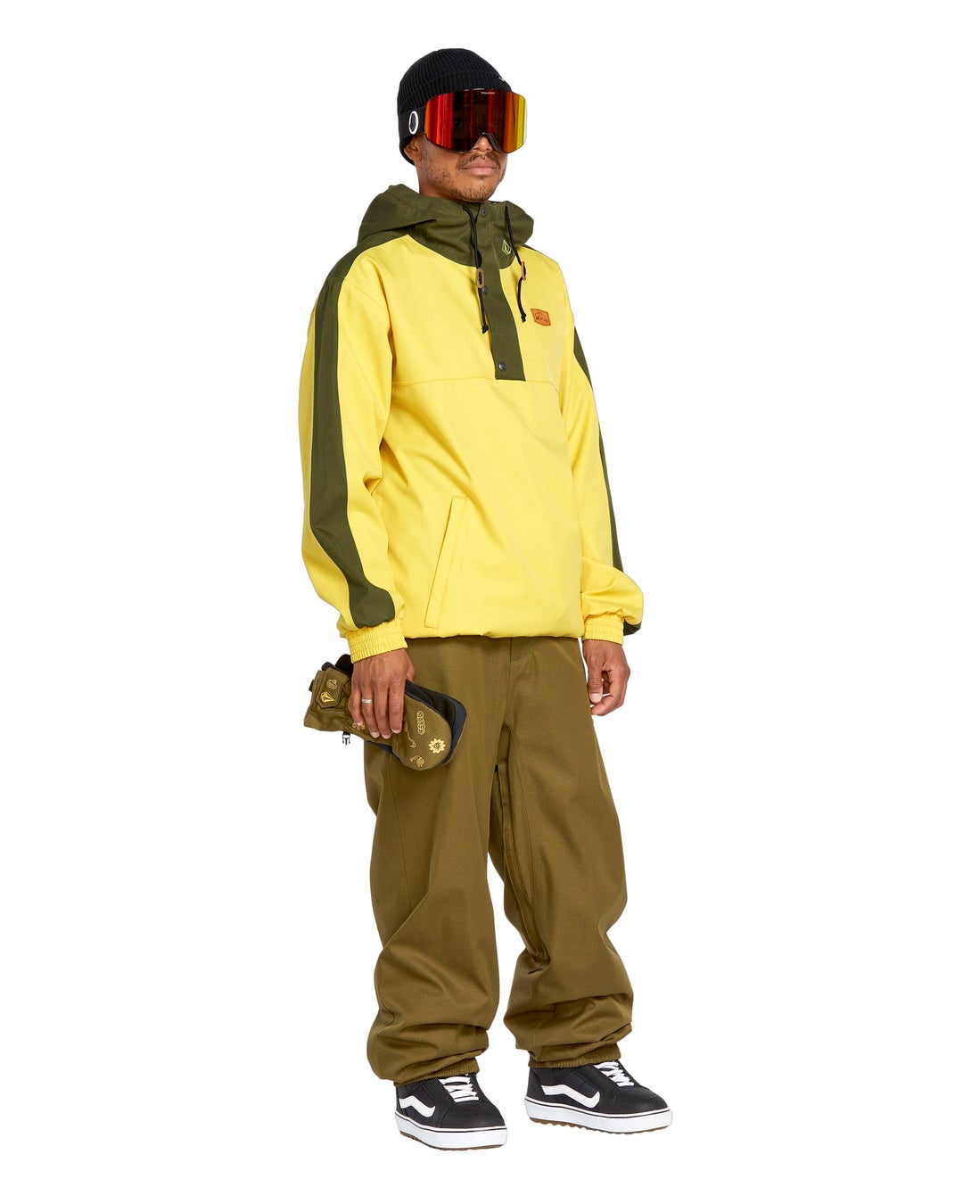 VOLCOMの高性能ラインナップの一つとして、厳しい冬山の環境下でも快適に過ごせるよう設計された信頼性の高いスノーボードウェアとして新たに開発された20Kシリーズの「LONGO 20K PULLOVER」 と「ARTHUR 20K PANTS」は、レトロなVOLCOMの美学と現代的センスを融合した時代を超越したデザインが特徴。V-Science 2層スプリームツイル生地と通気性のある裏地システムを採用し、20,000mm / 20,000gm²の高い防水性能を備えています。取り外し可能なフードがストリートウェアの要素を加え、クラシックなプルオーバーにクールな印象をプラスしています。