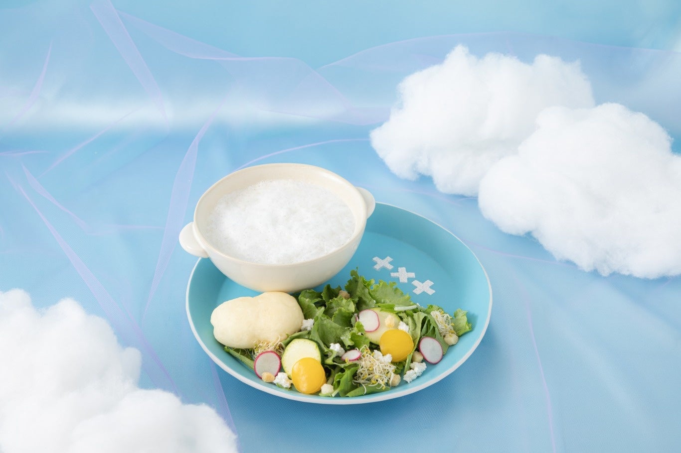 入道雲をイメージしたドリア、ひつじ雲をイメージした具沢山のコンソメスープとパンのプレート、わた雲をイメージしたパスタなどビジュアル的にも楽しめるフードをはじめ、メンバーの好物を取り入れたデザートやドリンクなど、爽やかな空に浮かぶ雲を食べるような、非日常を感じられるメニューをご用意しております。