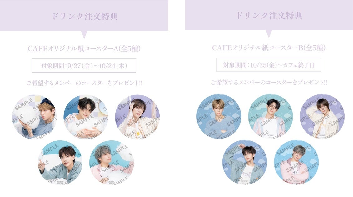 10月25日(金)〜CAFE終了日「オリジナル紙コースターB(全5種)」を1品につき1枚(ご希望のメンバー)プレゼント。