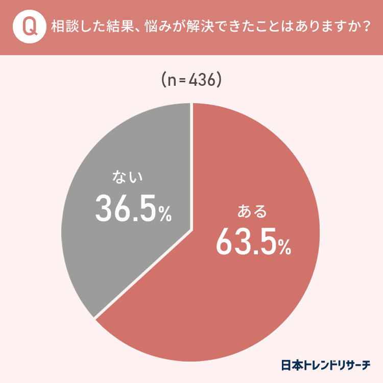 63.5%の方が、相談したことで「悩みが解決できたことがある」と回答しました。