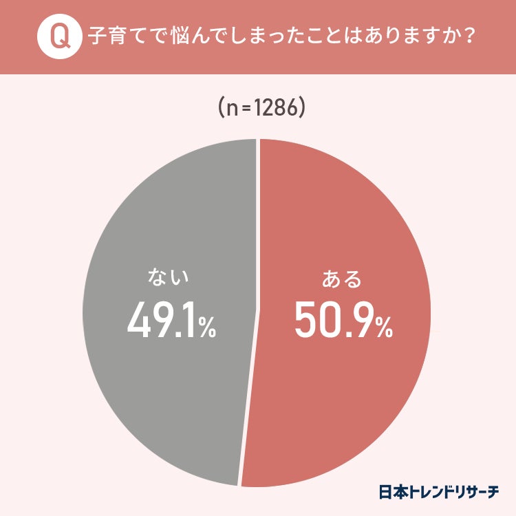 子供がいる方のうち、50.9%の方が子育てで悩んだことがあるようです。