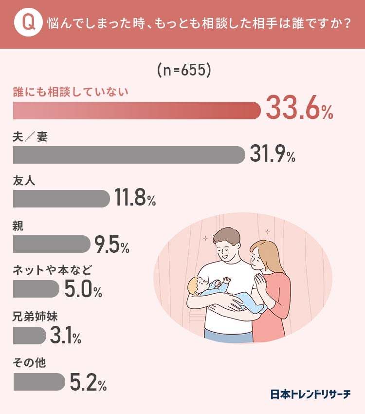 【子育ての悩み】子供がいるパパ・ママの33.6%が「悩みを誰にも相談していない」
