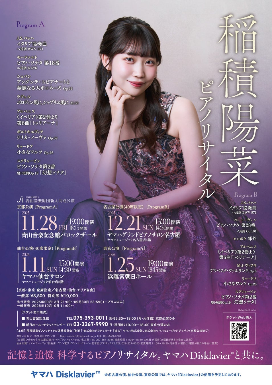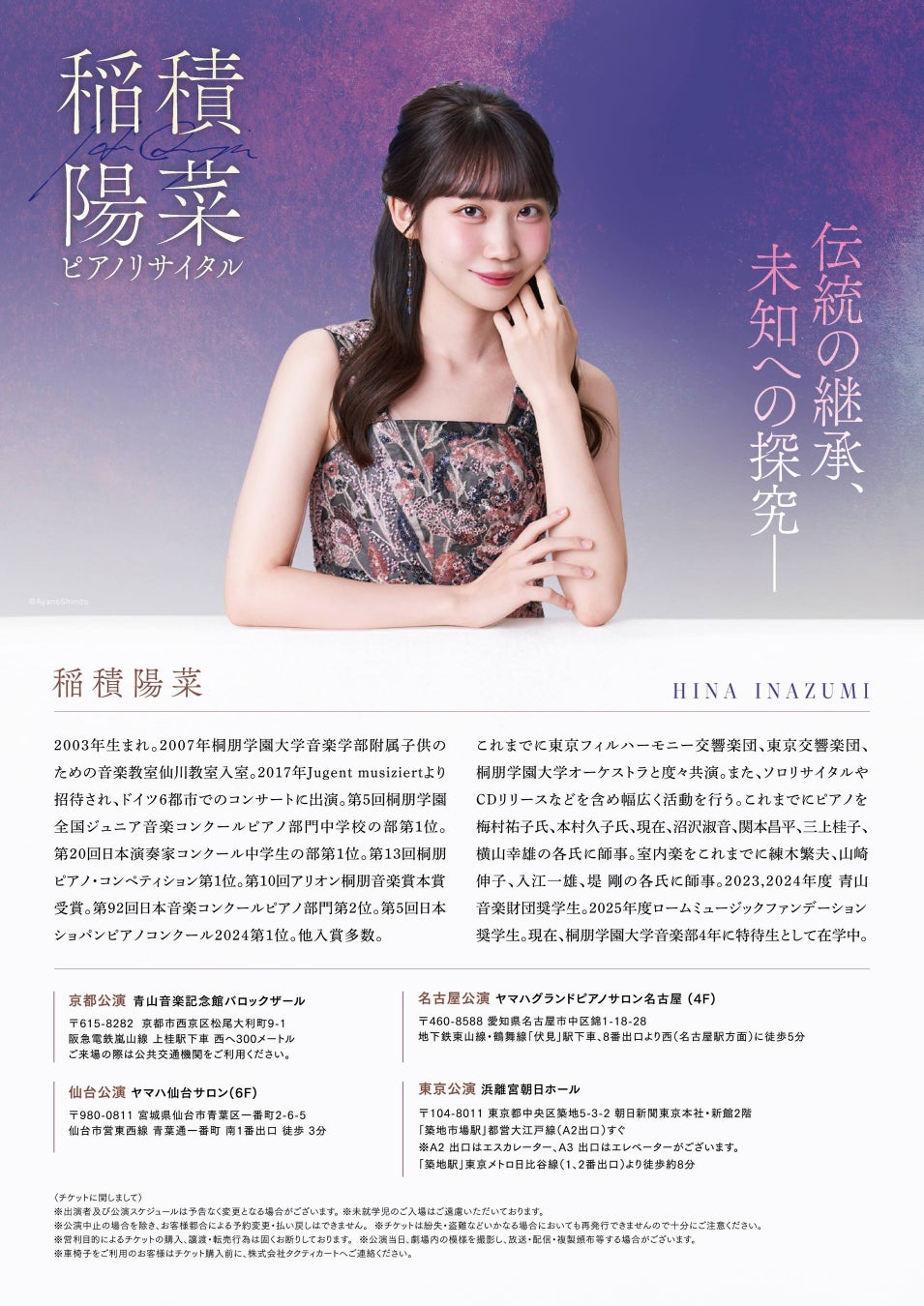 【公演概要】稲積陽菜 ピアノリサイタル 『伝統の継承、未知への探求-』