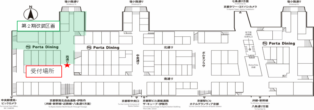 社のもと京都駅前地下街ポルタ西エリア飲食店ゾーンの第1期改装区画12店舗をリニューアルオープンしました