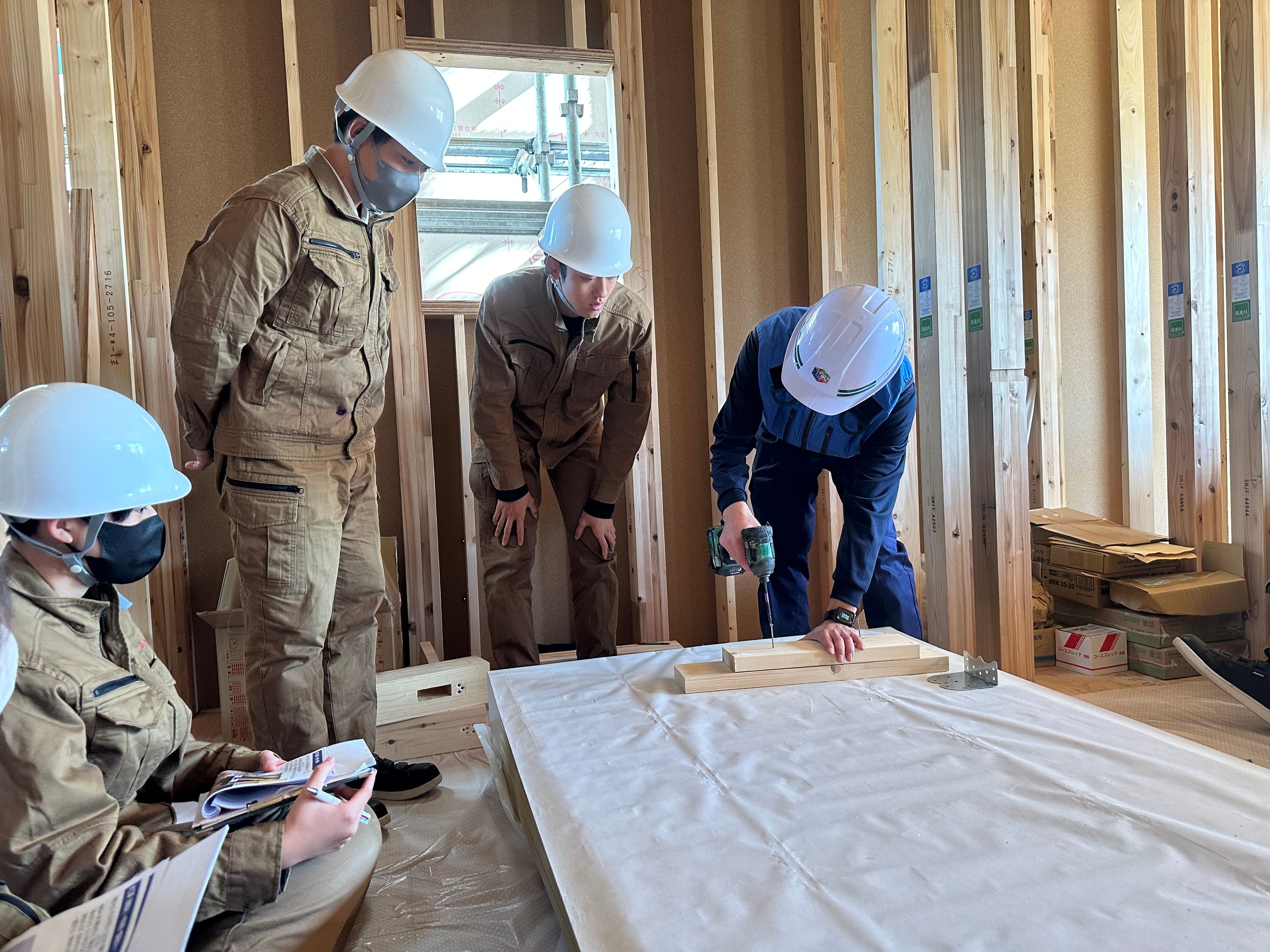 参加した高校生からは、「大工さんのビス打ちはとても早いのに、正確で驚きました。建築中の家の中に入るのは初めてだったので、授業では学べなかったことをたくさん知ることができました。道具の使い方や金物の用途なども学べて、大工さんが図面を見なくても間取りが分かるのがすごいと思いました。授業で聞いたことはあっても、実際に見たことのない部材を確認できたのも良かったです。」
