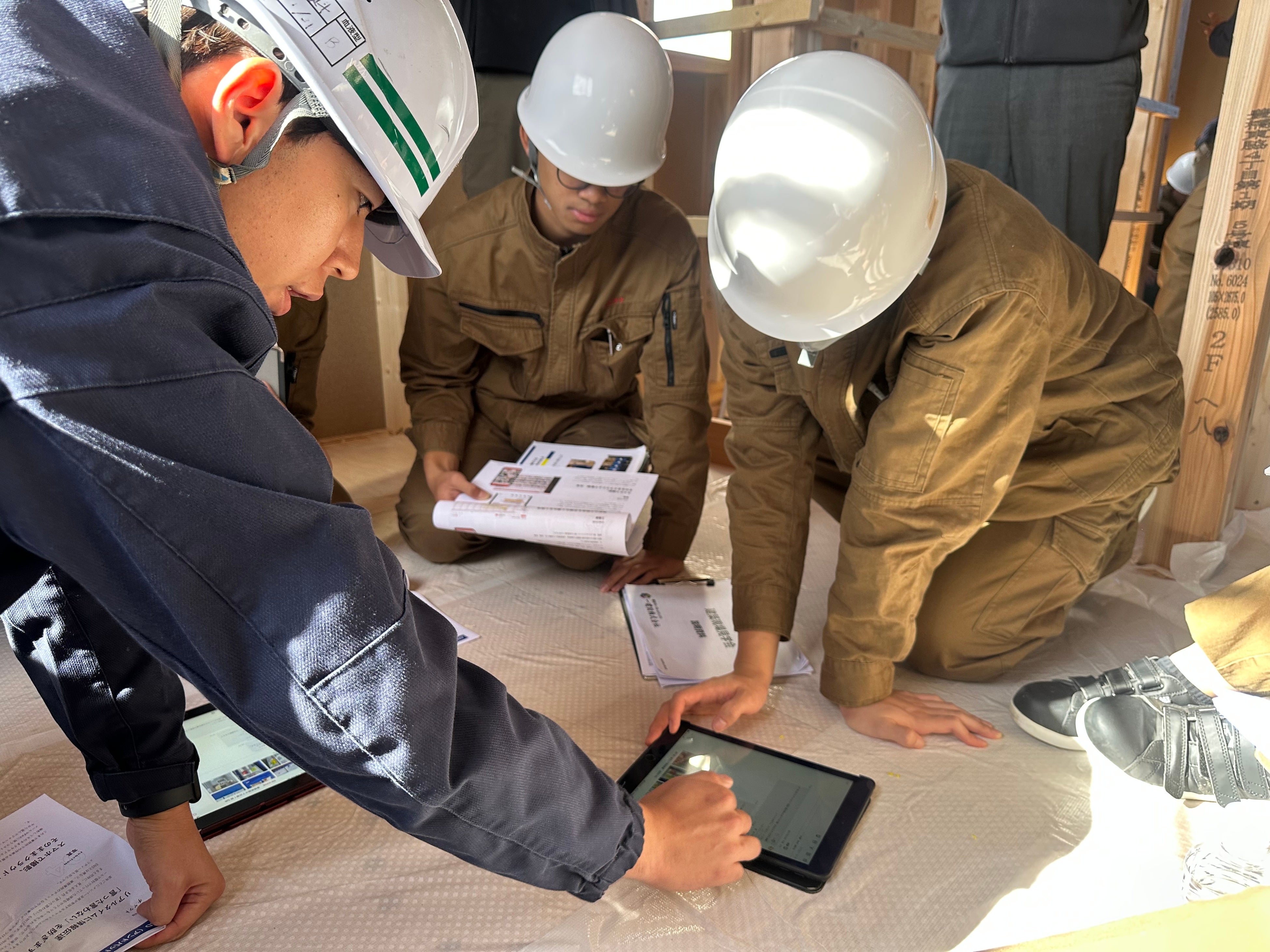 本見学会は、建築・建設業界の未来を担うZ世代である建築科の高校生に、実際の住宅建築プロセスや、iPadなどデジタルツールを使った最先端の現場管理を見ていただくことで、デジタル化など時代と共に変化する現場の働き方を知ってもらうことが目的です。