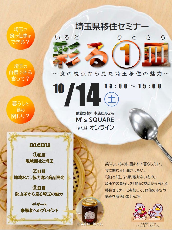 【埼玉県】官民連携による埼玉県移住セミナー「彩る①皿」の参加者を募集します