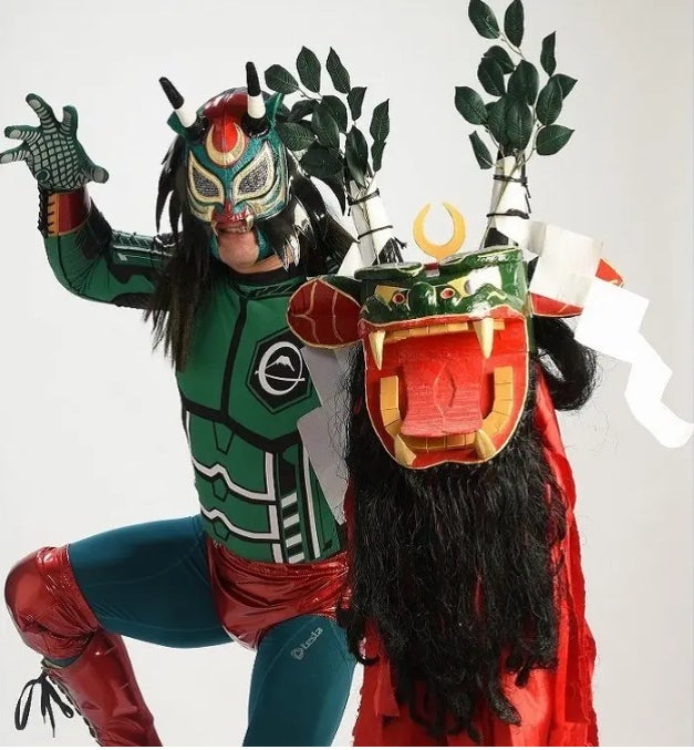 愛媛プロレスの「牛神ウシオニ・キング」と「石鎚山太郎」が力の限りを尽くし、最大風速で邪気を祓う熱波をお届けします。