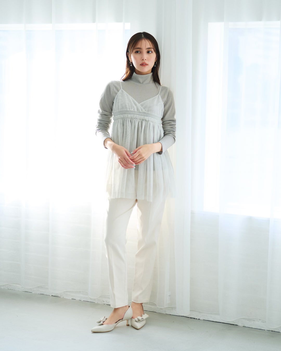 Camisole & Pullover Set_ ¥19,800、Pants_ ¥17,600、Pumps_ ¥17,600