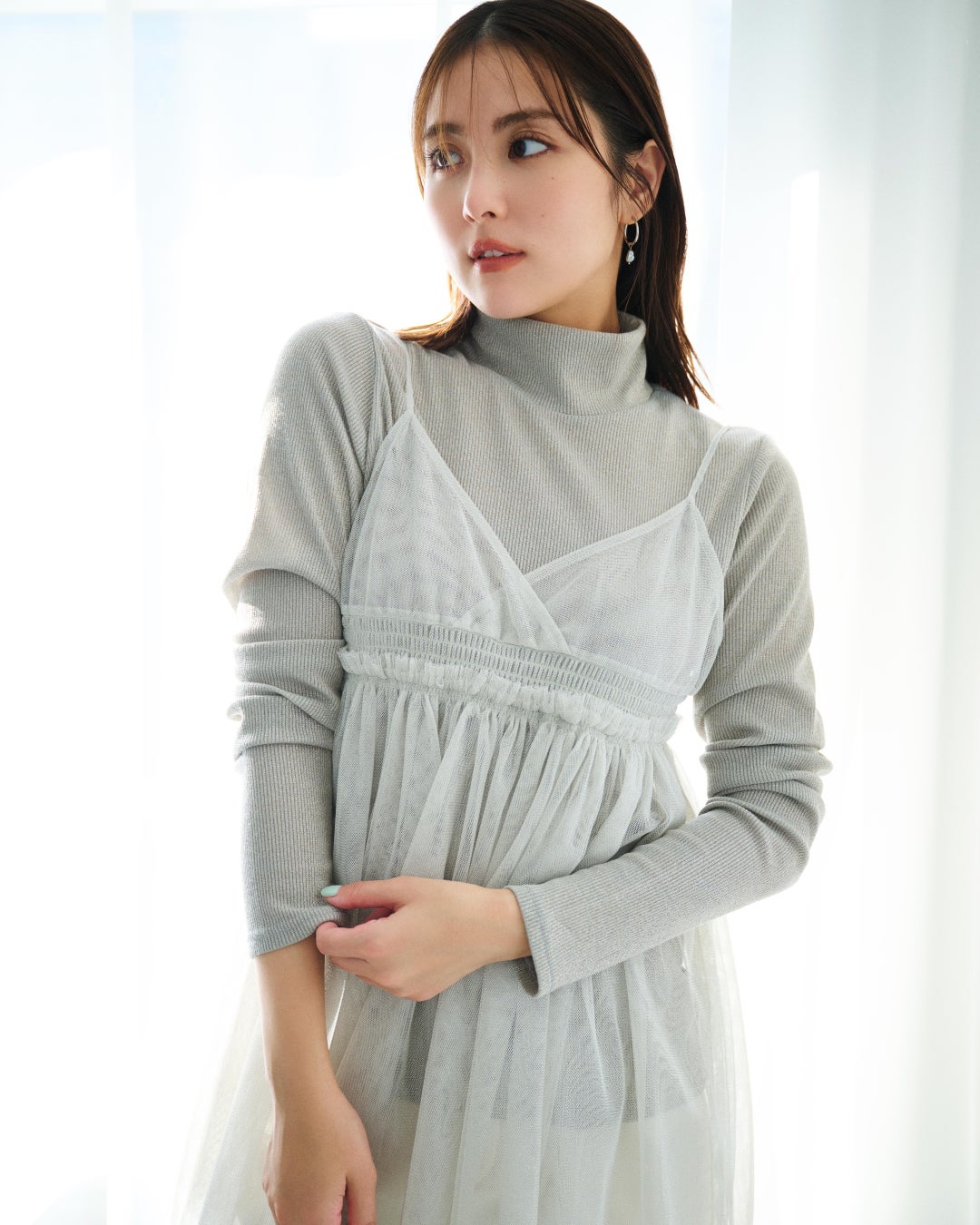 5.上品に煌めくラメを散りばめた心浮き立つレイヤードアイテム