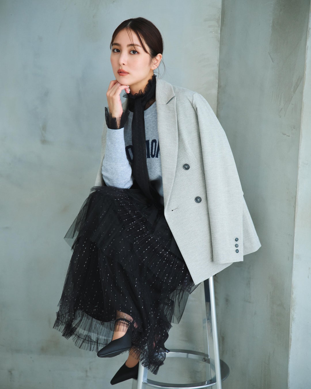 端正な大人っぽさと甘さが共存した、心浮き立つ着こなしを提案します。