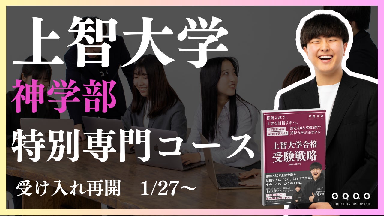 【圧倒的な上智大学合格実績】上智大学神学部を志望する受験生必見!上智大学合格実績トップクラスのEQAOが神学部に特化した専門講座をリリース。上智大学神学部を目指すならEQAO一択!上智対策塾EQAO