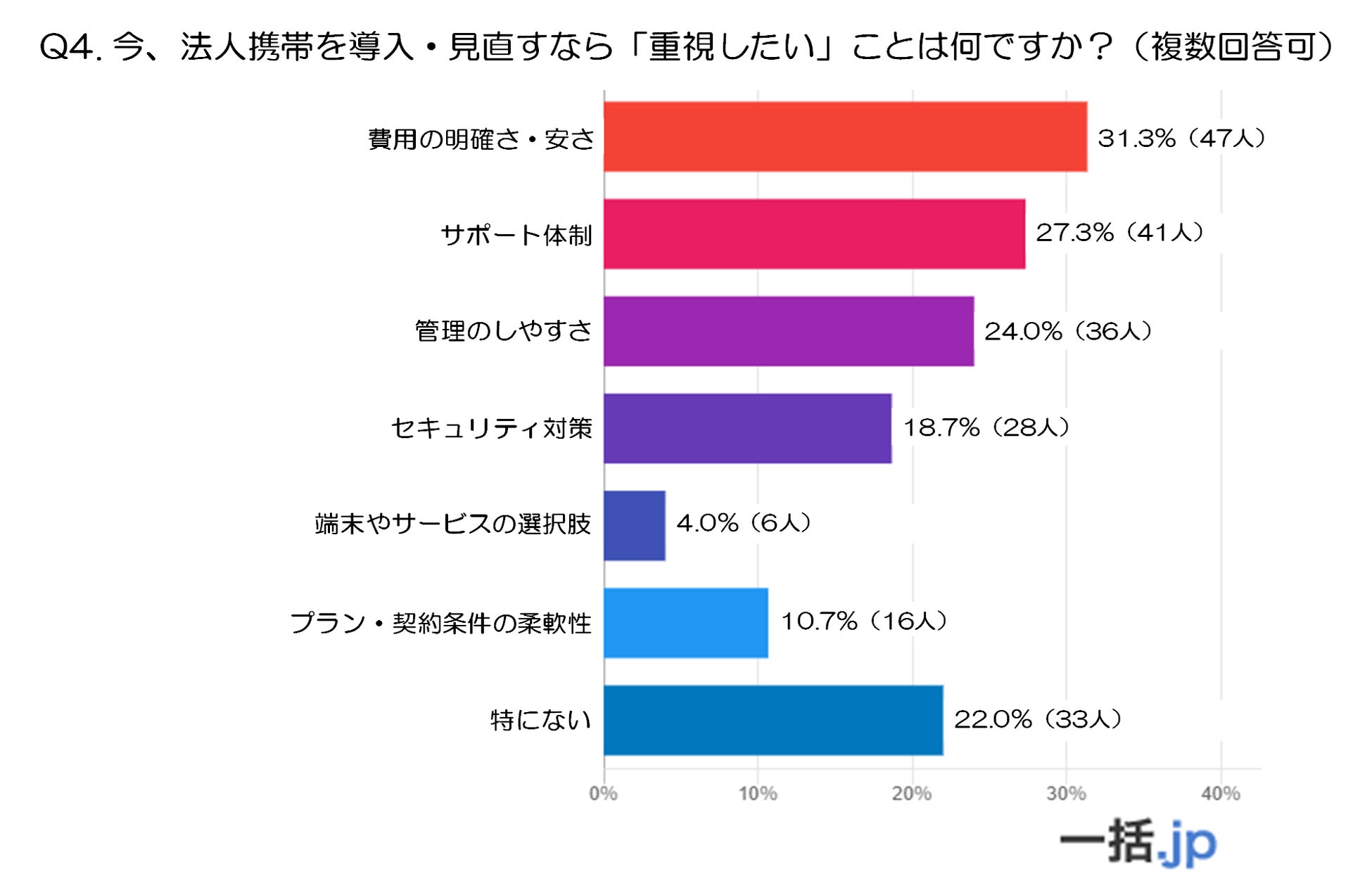 調査結果4:今、法人携帯を導入・見直すなら「重視したい」ことは何ですか?※複数選択可(注4)