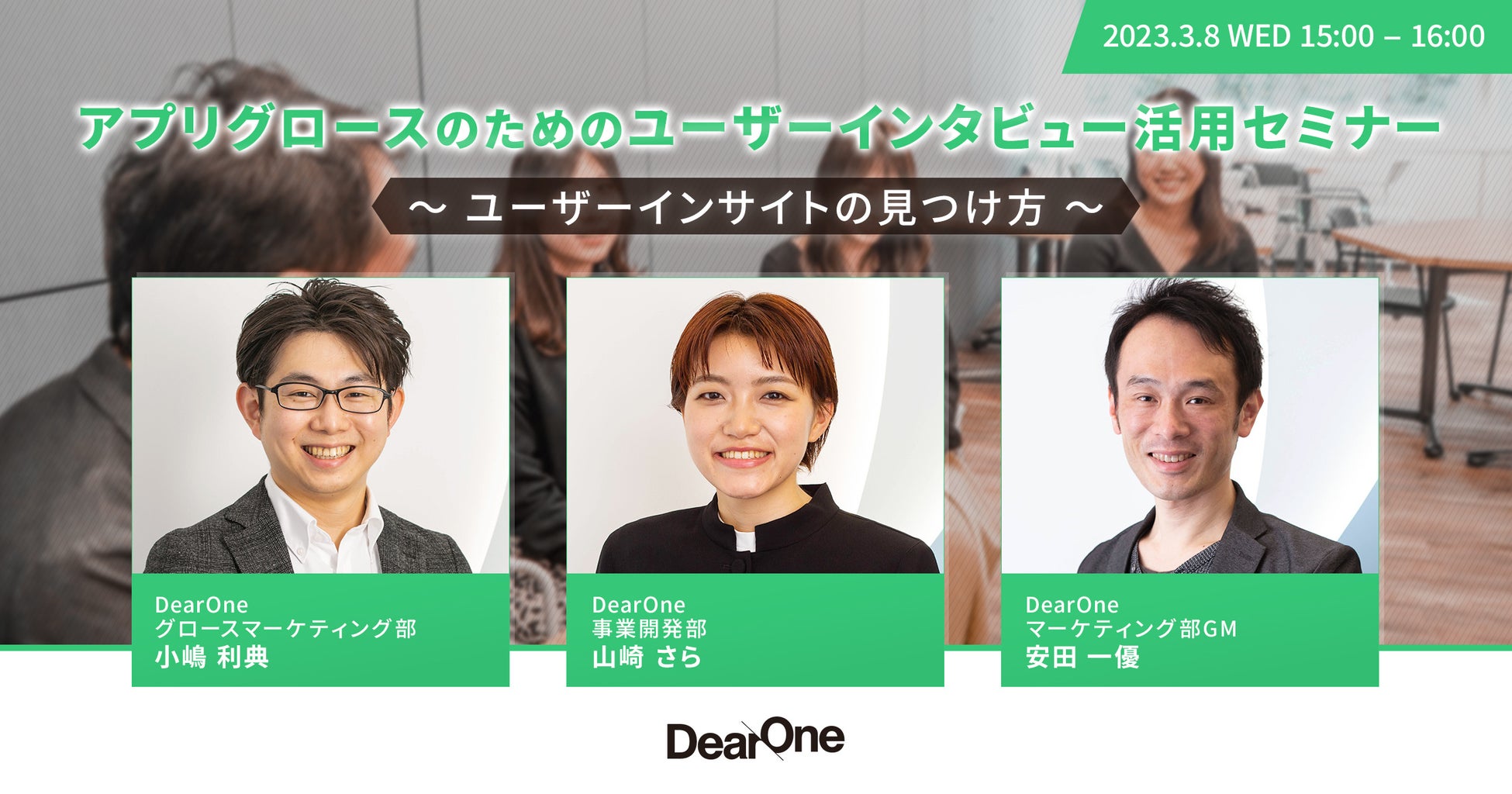 株式会社NTTドコモのマーケティング分野における新規事業型子会社である株式会社DearOne(本社:東京都港区、代表取締役:河野 恭久、以下:DearOne)は、「ユーザーインサイトの見つけ方」をテーマに2023年3月8日(水)に無料ウェビナーを開催します。
