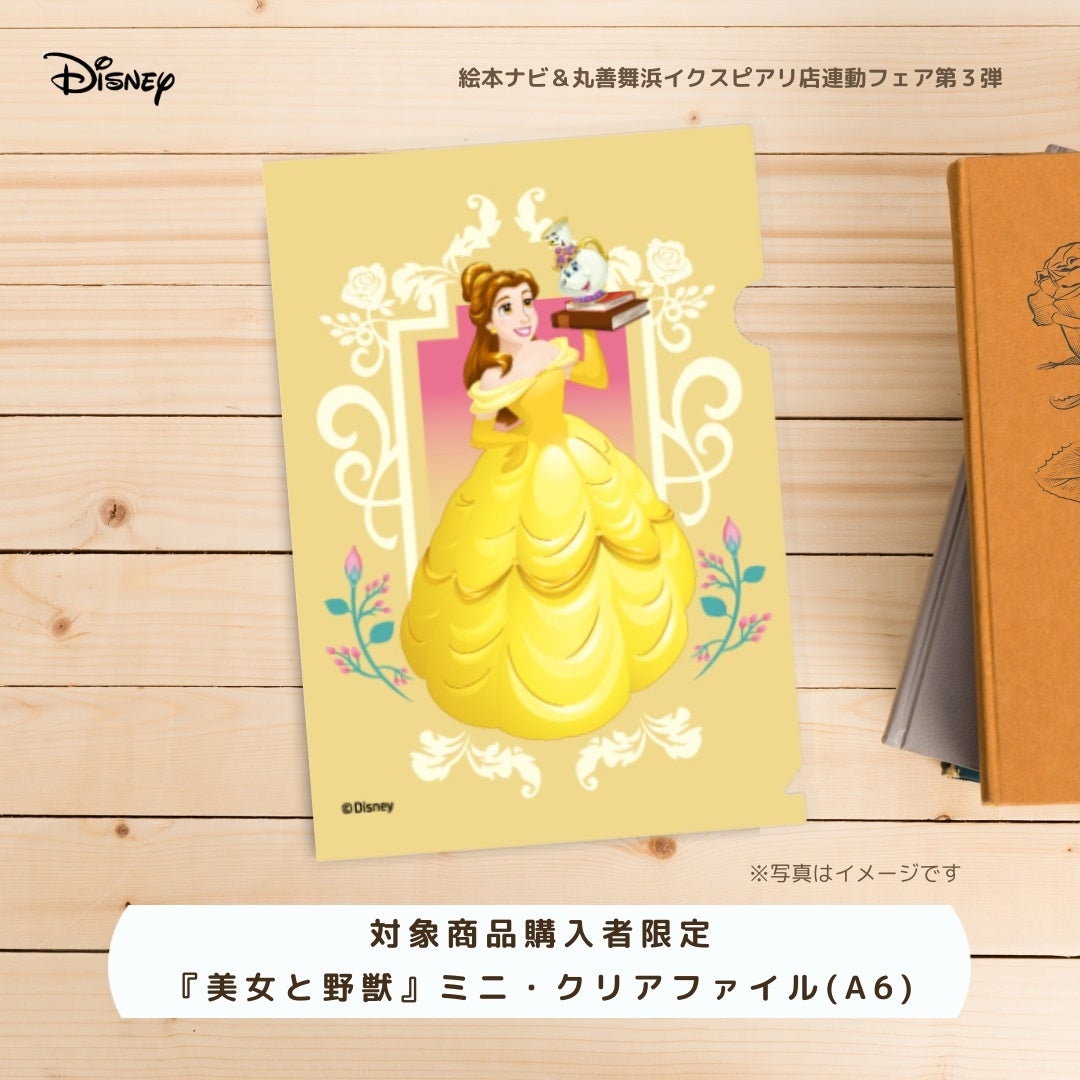 特設ページを更新、絵本ナビ&丸善舞浜イクスピアリ店で対象書籍のご購入・ご予約特典として、合計400名様へ、Disney『美女と野獣』のプリンセス・ベルの非売品A6版クリアファイルをプレゼントします。