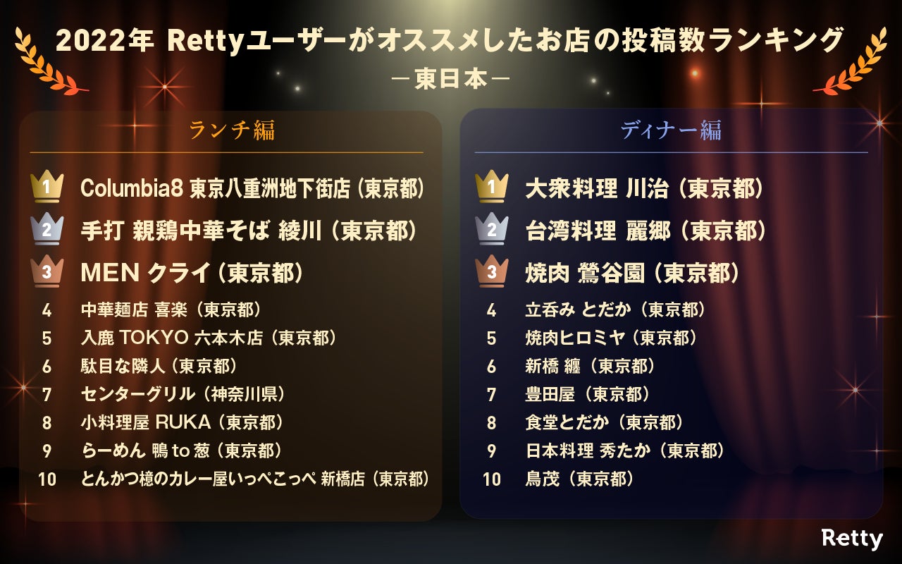 - 2022年 Rettyユーザーがオススメしたお店の投稿数ランキング ー東日本ー