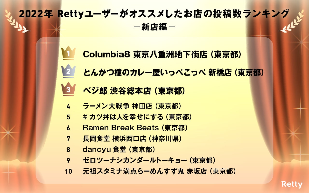 - 2022年 Rettyユーザーがオススメしたお店の投稿数ランキング ー新店編ー
