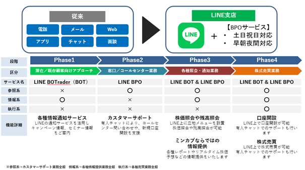 また、これらのアフターフォローに必要なシステムと人員のBPO※4を合わせてLINE支店構築サービスとして、金融機関への提供を開始いたしました。