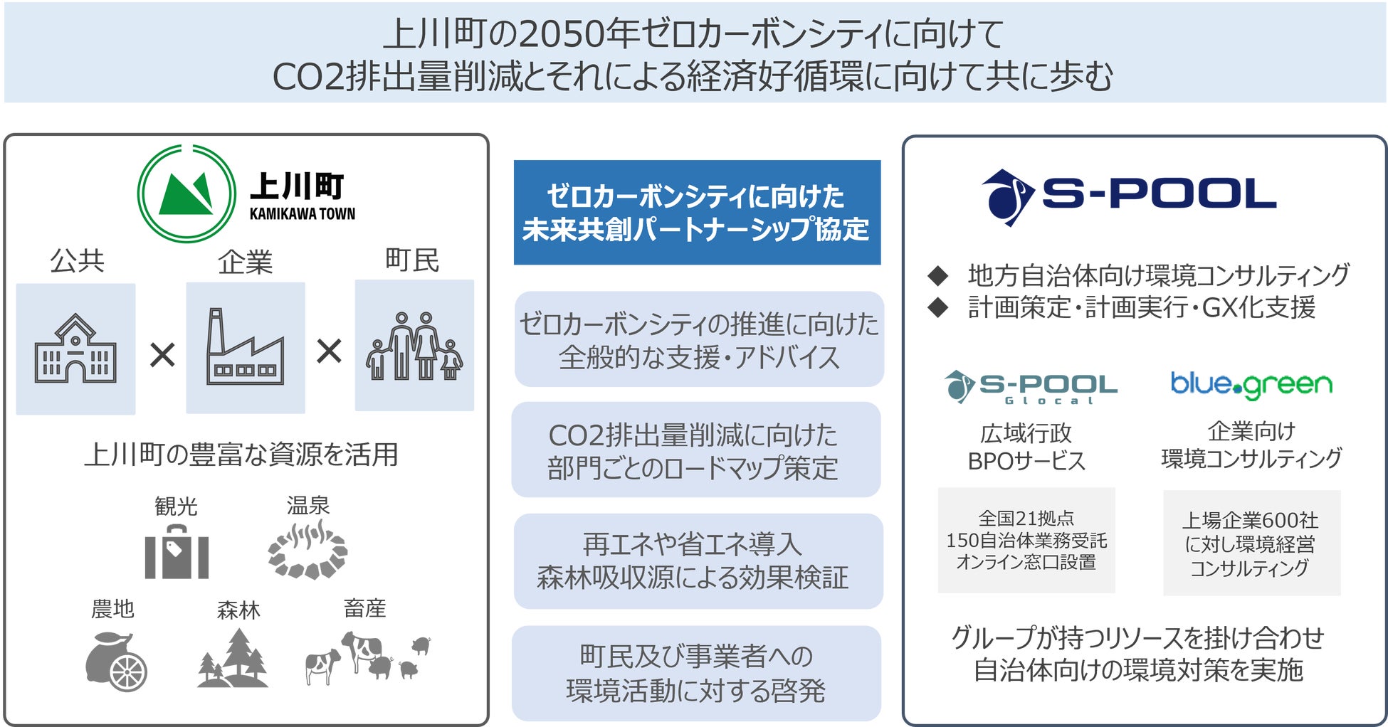 株式会社エスプール(本社:東京都千代田区/代表取締役会長兼社長:浦上 壮平/以下、「当社」)は、本日、北海道上川町(町長:西木 光英)と未来共創パートナーシップ協定を締結し、同町の地域資源を活用したゼロカーボンシティの実現に向けた取り組みを開始することとなりました。