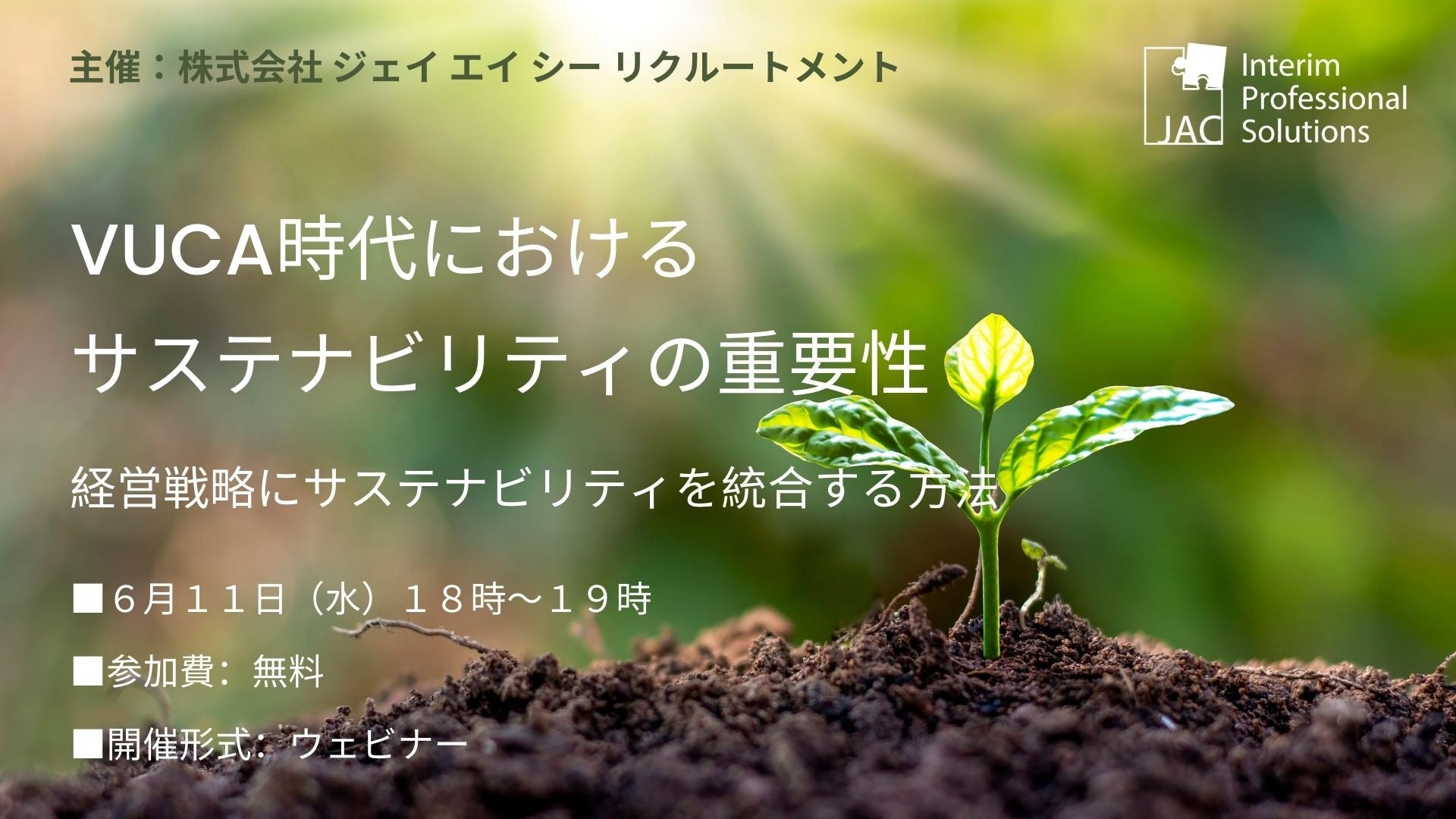 【6月11日開催】無料オンラインセミナー『VUCA時代におけるサステナビリティの重要性~経営戦略にサステナビリティを統合する方法~』