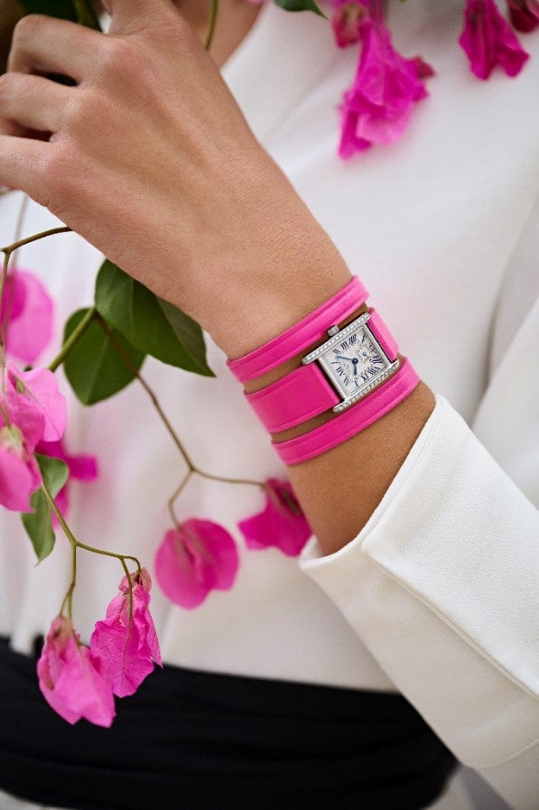 190 年以上の歴史を誇るスイスの時計ブランド『ロンジン』は、約1 世紀の豊かな時を刻み、洗練の進化を続ける人気レクタンギュラーウォッチ「ミニ ドルチェヴィータ」の新キャンペーンを展開。アイコニックなレクタンギュラーケースは、ダイアモンドのセッティングの有無にかかわらず、春のリラックスした軽やかな美しさを反映しています。ブランド独自のデザインを採用したカラフルなダブルツアーストラップモデルが、鮮やかな色彩とフレッシュなエネルギーを放つスプリング・シーズンを祝います。ベージュゴールド、ピンク、レッド、オレンジ、グリーンのナッパレザーを使用したストラップは、この季節に咲き誇る色彩に調和し、手首を柔らかくエレガントに包み込みます。
