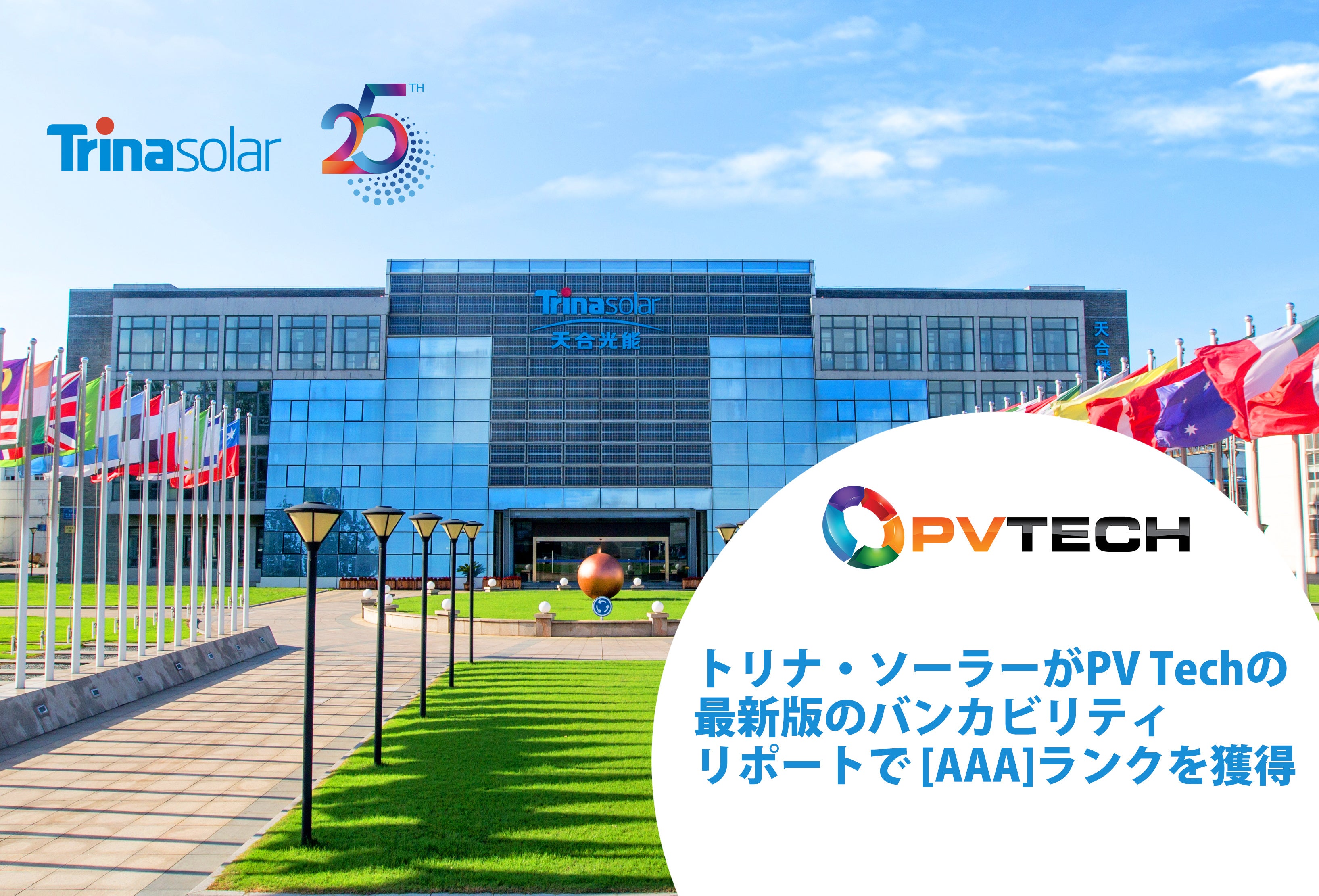 太陽光発電およびスマートエネルギーのトータルソリューションを提供する世界有数の企業Trina Solar Co., Ltd.(SH:688599)(以下「トリナ・ソーラー」または「同社」)は、PV-Techが発行する最新の「PV ModuleTech Bankabilityレポート:太陽光発電モジュールテックのバンカビリティ(融資適格性)格付け」で、最高ランクである「AAA」評価を獲得しました。