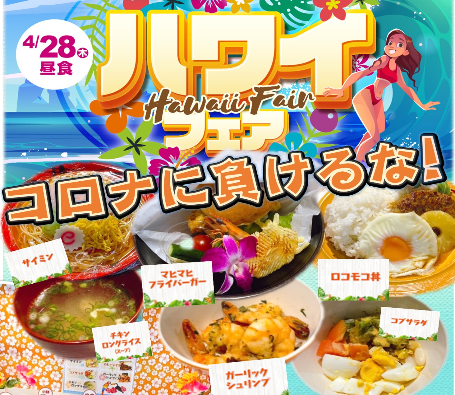 『ハワイフェア コロナに負けるな!心も身体も健康に!!』はコロナ禍で海外旅行が中々いけない中、ハワイに行った気分を味わえる企画として従業員に喜ばれました。