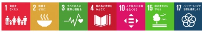 「先進国の肥満と開発途上国の飢餓の同時解決」を目指し、日本発のアイディアで活動を推進しています。 先進国では健康的な食生活や運動習慣を推奨し、開発途上国では子どもたちに学校給食を届けることを通じて、以下7つのゴール達成に貢献。
