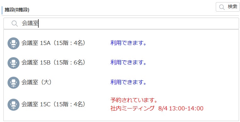 カレンダーの予定作成/編集画面にて、簡易検索による施設選択機能が追加されました。